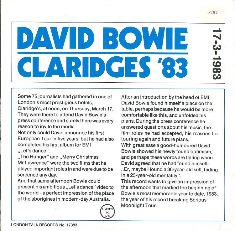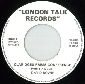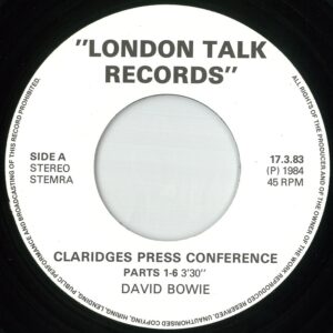 Bowie 74 – Little Drummer Boy – The Bowie Showboat – London By Ta-Ta – All The Young Dudes – Who Can I Be Now – Karma Man – Love You Till Tuesday – Ragazzo Solo, Ragazza Sola – Heroes – And I Say To Myself – The Prettiest Star – Five Years – Width Of A Circle – El Zumbido – Rotterdam 1983 – I’m Waiting For The Man – Velvet Couch – Claridges ’83 – Nothing Pornographic – That’s A Promise – Press To Play – The Ching A Ling Song – Paradiso 30.3.’87 – Unwashed And Slightly Dazed – African Night Flight – Sound And Vision 23.1.’90 – Space Oddity – Santa Monica 1972 – Absolute Beginners – Liza Jane – Wish You Well – The Shape Of Things To Come – Wild Is The Wind – White Light White Heat – Silly Boy Blue – Enchanting