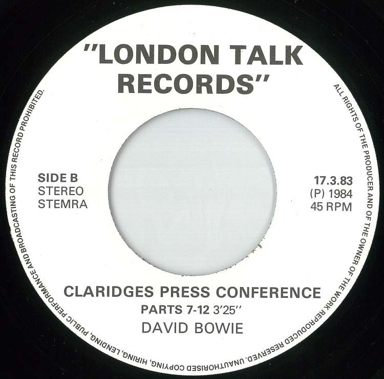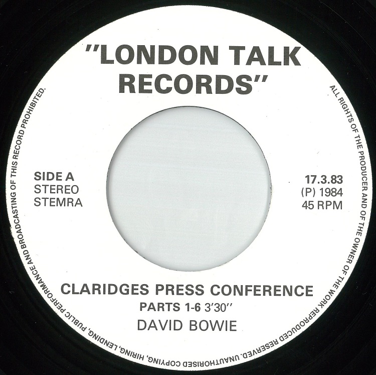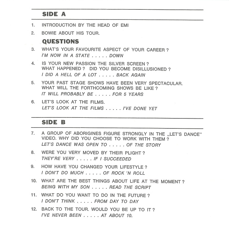 - THE PLASTIC SLEEVE IS A FLEXI RECORD OF DAVID BOWIE'S SPOKEN WISHES